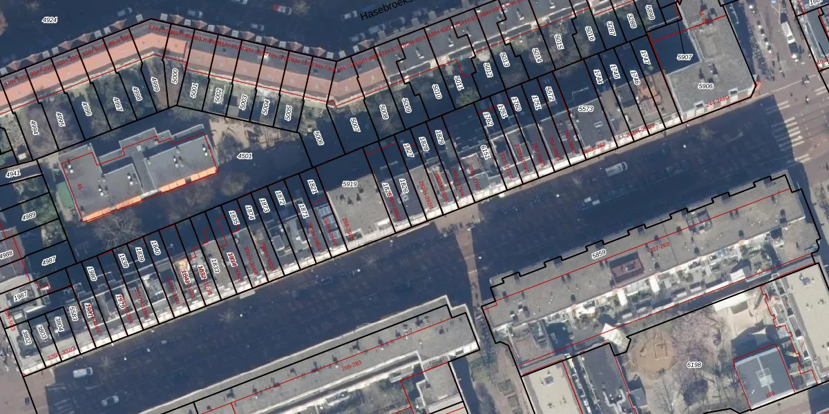 Het adres ligt op het perceel ASD16-T-1826, dat zich in de kadastrale gemeente Amsterdam bevindt. Het perceel is kleiner dan gemiddeld in Amsterdam. Het perceel is 92 m² groot, terwijl het gemiddelde ligt op 245,33 m². Het grootste perceel in de kadastrale gemeente is 3,3 ha. Het kleinste perceel heeft een oppervlakte van 0 m². Op het perceel zijn 9 adressen aanwezig. De laatste wijziging in het de Basisregistratie Kadaster (BRK) was op 15-08-2008.