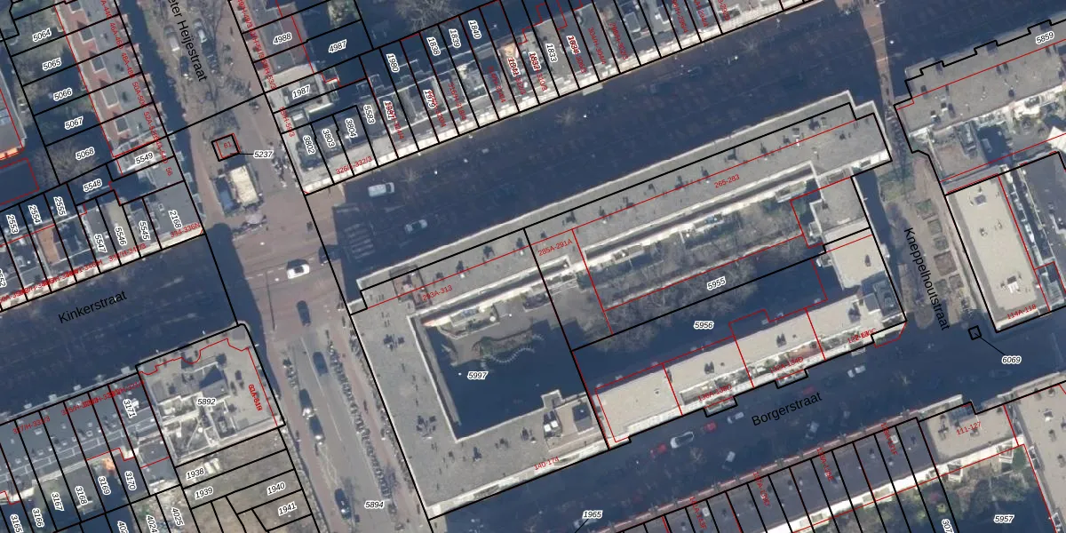Kinkerstraat 293-E is gelegen op kadastraal perceel ASD16T5997. Deze kadastrale aanduiding is uniek en wordt gebruikt door het Kadaster om eigendomsrechten en andere zakelijke rechten vast te leggen. Het perceel maakt onderdeel uit van de kadastrale gemeente Amsterdam.