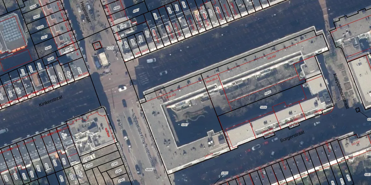Kinkerstraat 295-D is gelegen op kadastraal perceel ASD16T5997. Deze kadastrale aanduiding is uniek en wordt gebruikt door het Kadaster om eigendomsrechten en andere zakelijke rechten vast te leggen. Het perceel maakt onderdeel uit van de kadastrale gemeente Amsterdam.