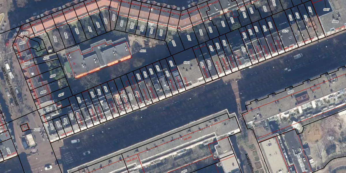 Het perceel waarop Kinkerstraat 296-H staat heeft een oppervlakte van 91 m². Dit is een klein perceel. De perceeloppervlakte wordt geregistreerd door het Kadaster. Gedetailleerde informatie over de maten van dit perceel kunt u vinden in het rapport Kadastrale kaart met maatvoering van Kinkerstraat 296-H.