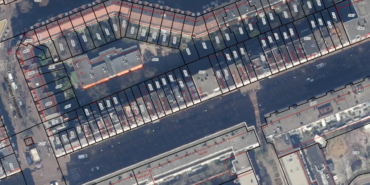 Het perceel waarop het adres ligt is ASD16-T-1871. De afkorting 'ASD16' staat voor kadastrale gemeente Amsterdam. Het perceel is 91 m² groot. Dat is kleiner dan de gemiddelde perceeloppervlakte in Amsterdam, dat op 245,33 m² ligt. De grootste perceeloppervlakte in de kadastrale gemeente is 3,3 ha. De kleinste oppervlakte bedraagt 0 m². Op het perceel zijn 5 adressen aanwezig. De huidige grenzen van het perceel zijn digitaal in de Basisregistratie Kadaster (BRK) geregistreerd op 15-08-2008.