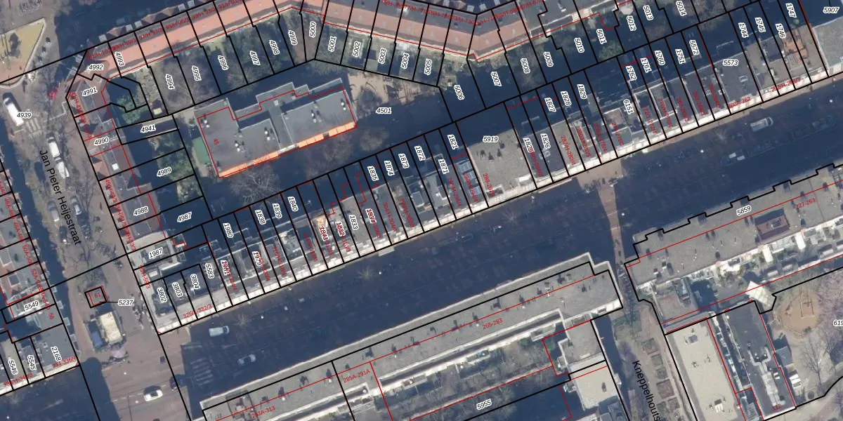 Het adres is gelegen op perceel 1873 in de sectie T en de kadastrale gemeente Amsterdam. De kadastrale aanduiding is aldus ASD16-T-1873. Het perceel is 90 m² groot. Dat is kleiner dan de gemiddelde perceeloppervlakte in Amsterdam, dat op 245,33 m² ligt. Het grootste perceel in de kadastrale gemeente is 3,3 ha. Het kleinste perceel heeft een oppervlakte van 0 m². Er zijn 4 adressen aanwezig op het perceel. In de Basisregistratie Kadaster (BRK) werden de grenzen van het perceel geregistreerd op 15-08-2008.