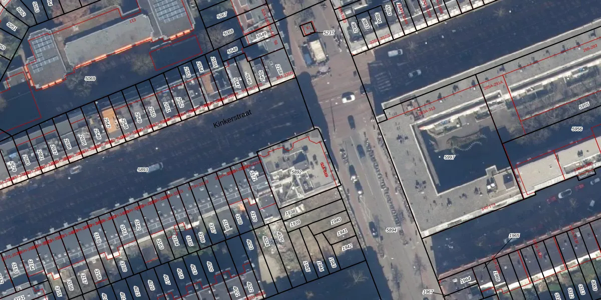Kinkerstraat 315 is gelegen op kadastraal perceel ASD16T5892. Deze kadastrale aanduiding is uniek en wordt gebruikt door het Kadaster om eigendomsrechten en andere zakelijke rechten vast te leggen. Het perceel maakt onderdeel uit van de kadastrale gemeente Amsterdam.