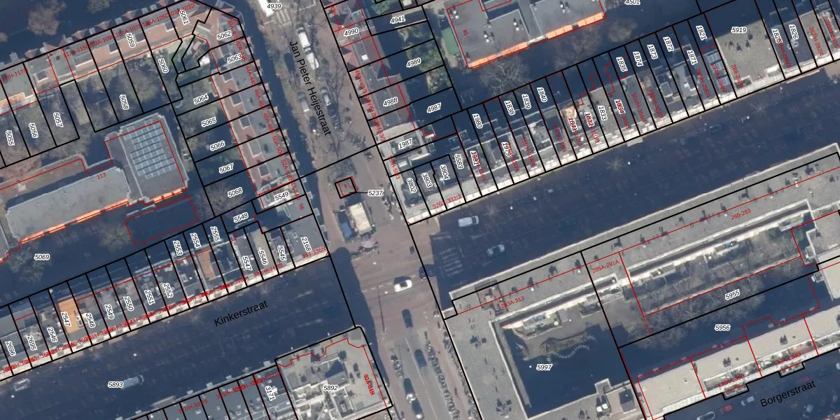 Het perceel waarop het adres ligt is ASD16-T-3802. De afkorting 'ASD16' staat voor kadastrale gemeente Amsterdam. Het perceel is kleiner dan gemiddeld in Amsterdam. Het perceel is 72 m² groot, terwijl het gemiddelde ligt op 245,33 m². Het grootste perceel in de kadastrale gemeente is 3,3 ha. Het kleinste perceel heeft een oppervlakte van 0 m². Op het perceel zijn 7 adressen aanwezig. De huidige grenzen van het perceel zijn digitaal in de Basisregistratie Kadaster (BRK) geregistreerd op 15-08-2008.