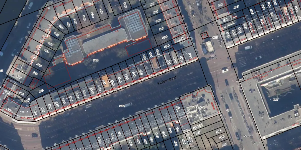 Kinkerstraat 348-O is gelegen op kadastraal perceel ASD16T2553. Deze kadastrale aanduiding is uniek en wordt gebruikt door het Kadaster om eigendomsrechten en andere zakelijke rechten vast te leggen. Het perceel maakt onderdeel uit van de kadastrale gemeente Amsterdam.