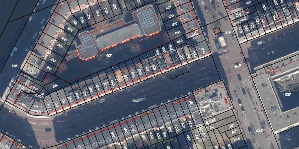 Kinkerstraat 352-B is gelegen op kadastraal perceel ASD16T2551. Deze kadastrale aanduiding is uniek en wordt gebruikt door het Kadaster om eigendomsrechten en andere zakelijke rechten vast te leggen. Het perceel maakt onderdeel uit van de kadastrale gemeente Amsterdam.