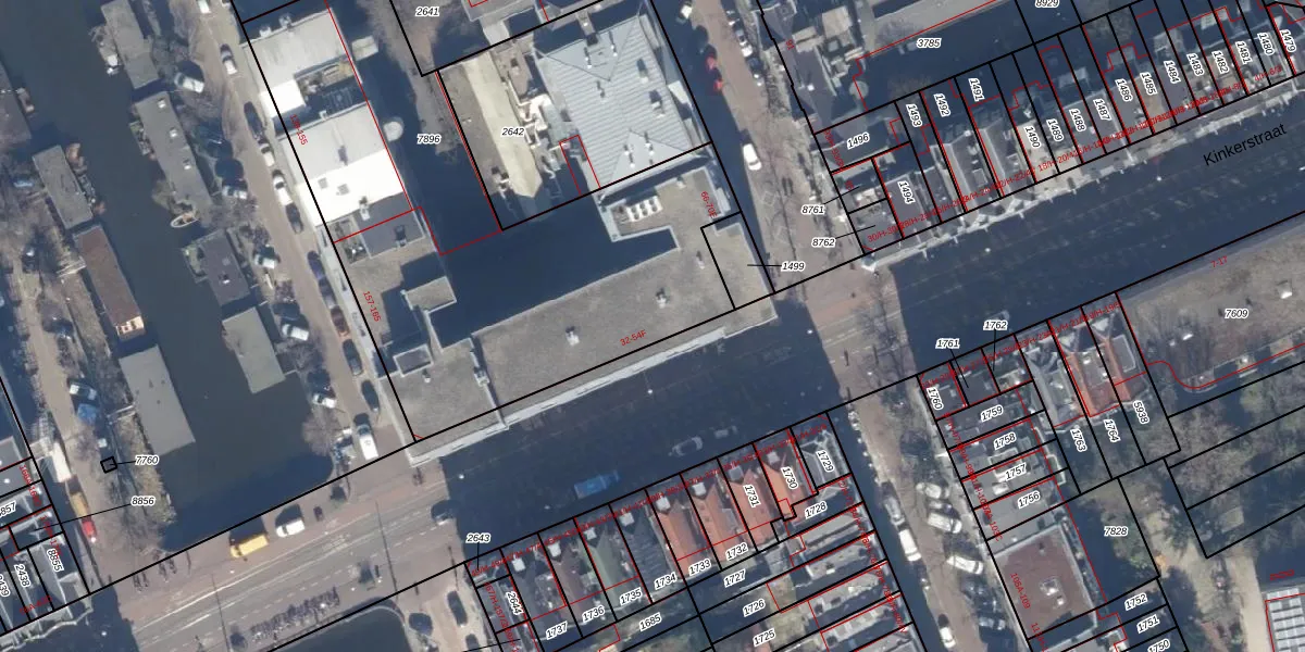 Het perceel waarop Kinkerstraat 36 staat heeft een oppervlakte van 2466 m². Dit is een zeer groot perceel. De perceeloppervlakte wordt geregistreerd door het Kadaster. Gedetailleerde informatie over de maten van dit perceel kunt u vinden in het rapport Kadastrale kaart met maatvoering van Kinkerstraat 36.