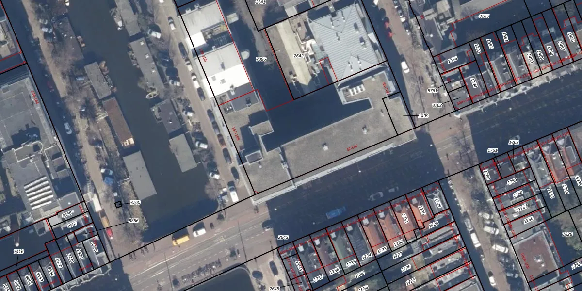 Het adres is gelegen op perceel 7896 in de sectie Q en de kadastrale gemeente Amsterdam. De kadastrale aanduiding is aldus ASD13-Q-7896. De gemiddelde perceeloppervlakte in de kadastrale gemeente Amsterdam is 392,9 m². Dit perceel is met zijn 2466 m² dus groter dan gemiddeld. De grootste perceeloppervlakte in de kadastrale gemeente is 4,8 ha. De kleinste oppervlakte bedraagt 1 m². Op het perceel liggen in totaal 91 adressen. De huidige grenzen van het perceel zijn digitaal in de Basisregistratie Kadaster (BRK) geregistreerd op 23-11-2006.
