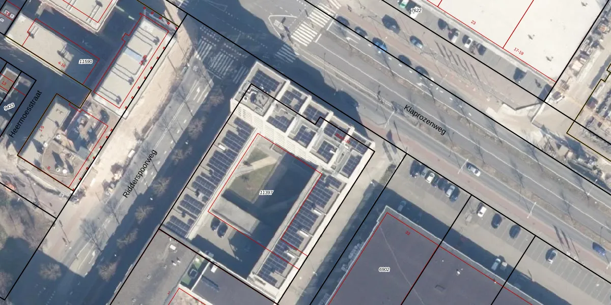 Het adres ligt op het perceel ASD07-K-11397, dat zich in de kadastrale gemeente Amsterdam bevindt. Het perceel is 2657 m² groot. Dat is kleiner dan de gemiddelde perceeloppervlakte in Amsterdam, dat op 3005,21 m² ligt. De grootste perceeloppervlakte in de kadastrale gemeente is 56,2 ha. De kleinste oppervlakte bedraagt 0 m². Op het perceel liggen in totaal 99 adressen. De laatste wijziging in het de Basisregistratie Kadaster (BRK) was op 10-06-2024.