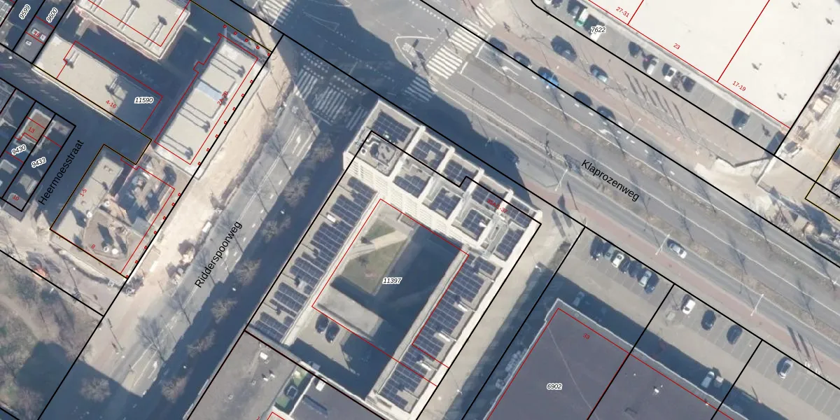 Het adres ligt op het perceel ASD07-K-11397, dat zich in de kadastrale gemeente Amsterdam bevindt. Het perceel is 2657 m² groot. Dat is kleiner dan de gemiddelde perceeloppervlakte in Amsterdam, dat op 3007,63 m² ligt. De grootste perceeloppervlakte in de kadastrale gemeente is 56,2 ha. De kleinste oppervlakte bedraagt 0 m². Op het perceel liggen in totaal 99 adressen. In de Basisregistratie Kadaster (BRK) werden de grenzen van het perceel geregistreerd op 10-06-2024.
