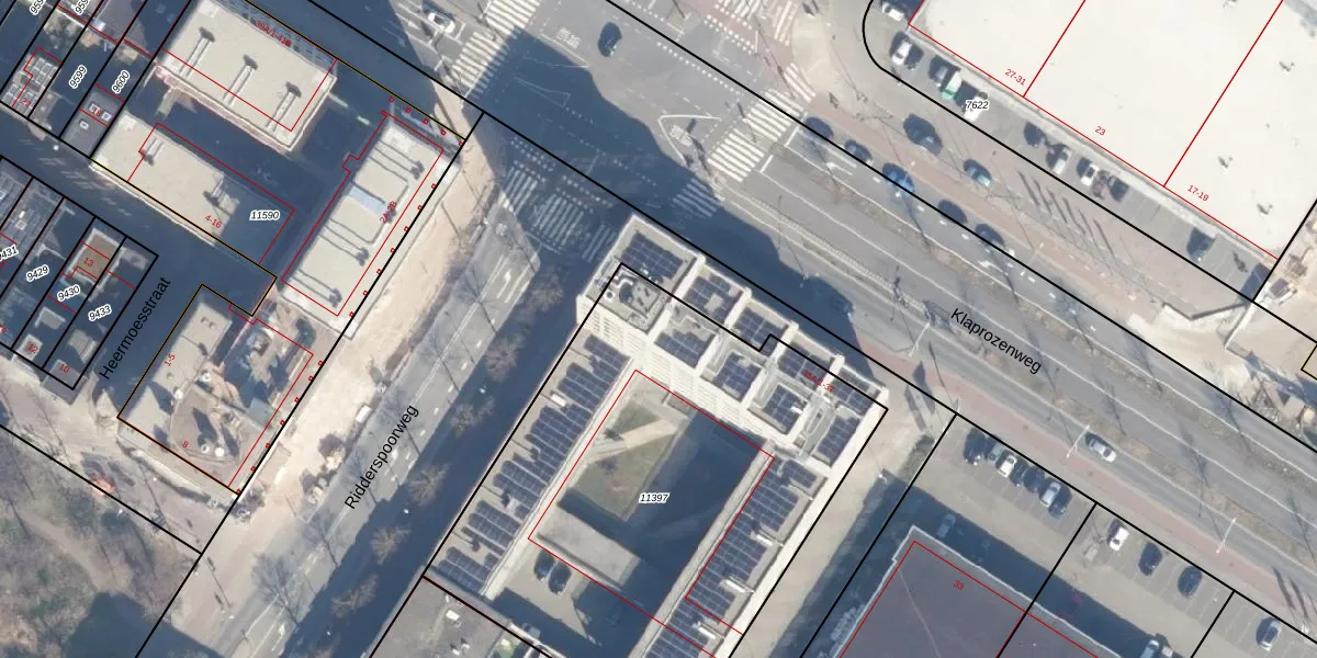 Het adres ligt op het perceel ASD07-K-11397, dat zich in de kadastrale gemeente Amsterdam bevindt. Het perceel is 2657 m² groot. Dat is kleiner dan de gemiddelde perceeloppervlakte in Amsterdam, dat op 3009,24 m² ligt. De grootste perceeloppervlakte in de kadastrale gemeente is 56,2 ha. De kleinste oppervlakte bedraagt 0 m². Op het perceel liggen in totaal 99 adressen. De huidige grenzen van het perceel zijn digitaal in de Basisregistratie Kadaster (BRK) geregistreerd op 10-06-2024.