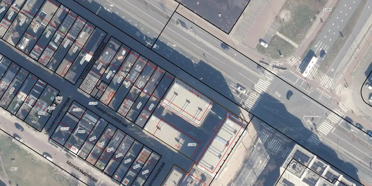 Het adres ligt op het perceel ASD07-K-11590, dat zich in de kadastrale gemeente Amsterdam bevindt. Het perceel is kleiner dan gemiddeld in Amsterdam. Het perceel is 2165 m² groot, terwijl het gemiddelde ligt op 3005,21 m². De grootste perceeloppervlakte in de kadastrale gemeente is 56,2 ha. De kleinste oppervlakte bedraagt 0 m². Er zijn 115 adressen aanwezig op het perceel. De huidige grenzen van het perceel zijn digitaal in de Basisregistratie Kadaster (BRK) geregistreerd op 23-09-2021.
