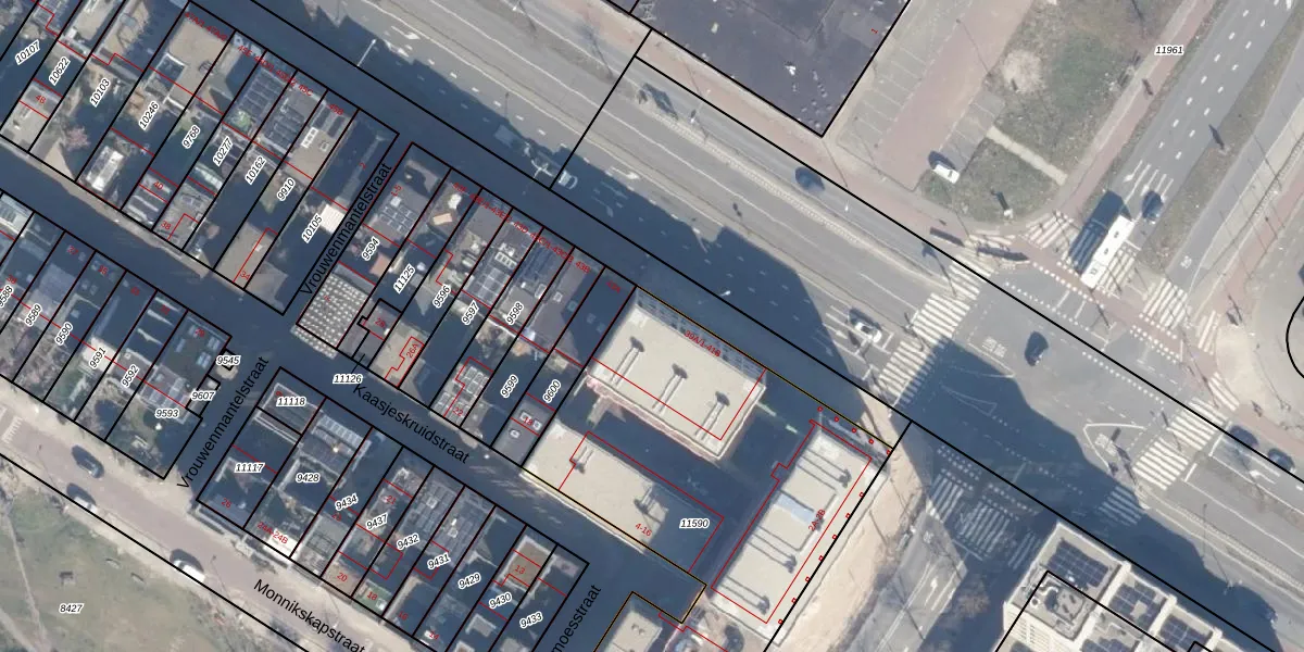Het adres ligt op het perceel ASD07-K-11590, dat zich in de kadastrale gemeente Amsterdam bevindt. Het perceel is kleiner dan gemiddeld in Amsterdam. Het perceel is 2165 m² groot, terwijl het gemiddelde ligt op 3009,24 m². De grootste perceeloppervlakte in de kadastrale gemeente is 56,2 ha. De kleinste oppervlakte bedraagt 0 m². Er zijn 115 adressen aanwezig op het perceel. De laatste wijziging in het de Basisregistratie Kadaster (BRK) was op 23-09-2021.