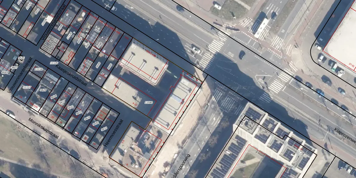 Het adres ligt op het perceel ASD07-K-11590, dat zich in de kadastrale gemeente Amsterdam bevindt. Het perceel is kleiner dan gemiddeld in Amsterdam. Het perceel is 2165 m² groot, terwijl het gemiddelde ligt op 3010,05 m². De grootste perceeloppervlakte in de kadastrale gemeente is 56,2 ha. De kleinste oppervlakte bedraagt 0 m². Er zijn 115 adressen aanwezig op het perceel. De laatste wijziging in het de Basisregistratie Kadaster (BRK) was op 23-09-2021.