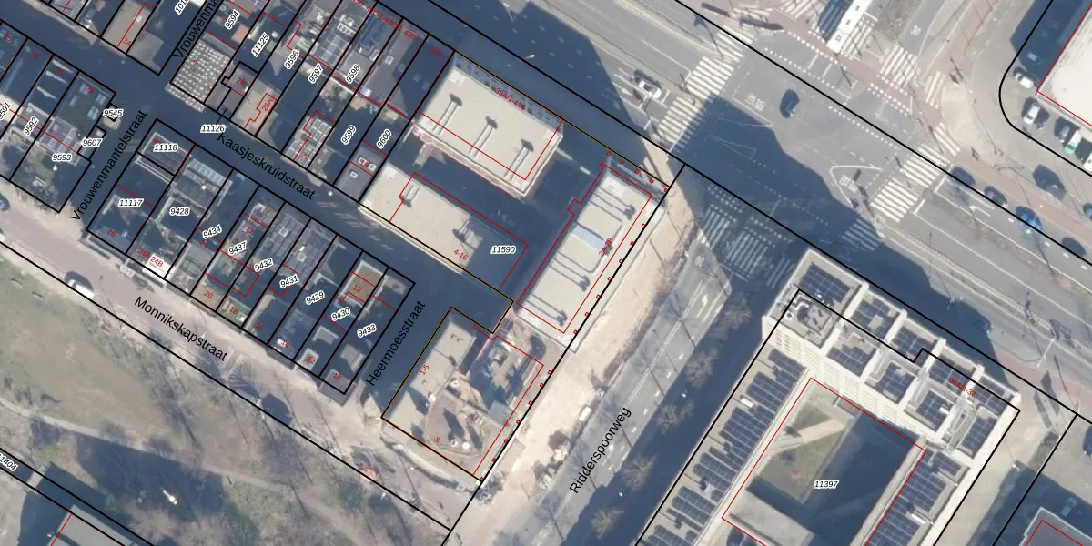 Het adres ligt op het perceel ASD07-K-11590, dat zich in de kadastrale gemeente Amsterdam bevindt. Het perceel is kleiner dan gemiddeld in Amsterdam. Het perceel is 2165 m² groot, terwijl het gemiddelde ligt op 3010,05 m². De grootste perceeloppervlakte in de kadastrale gemeente is 56,2 ha. De kleinste oppervlakte bedraagt 0 m². Op het perceel zijn 115 adressen aanwezig. In de Basisregistratie Kadaster (BRK) werden de grenzen van het perceel geregistreerd op 23-09-2021.