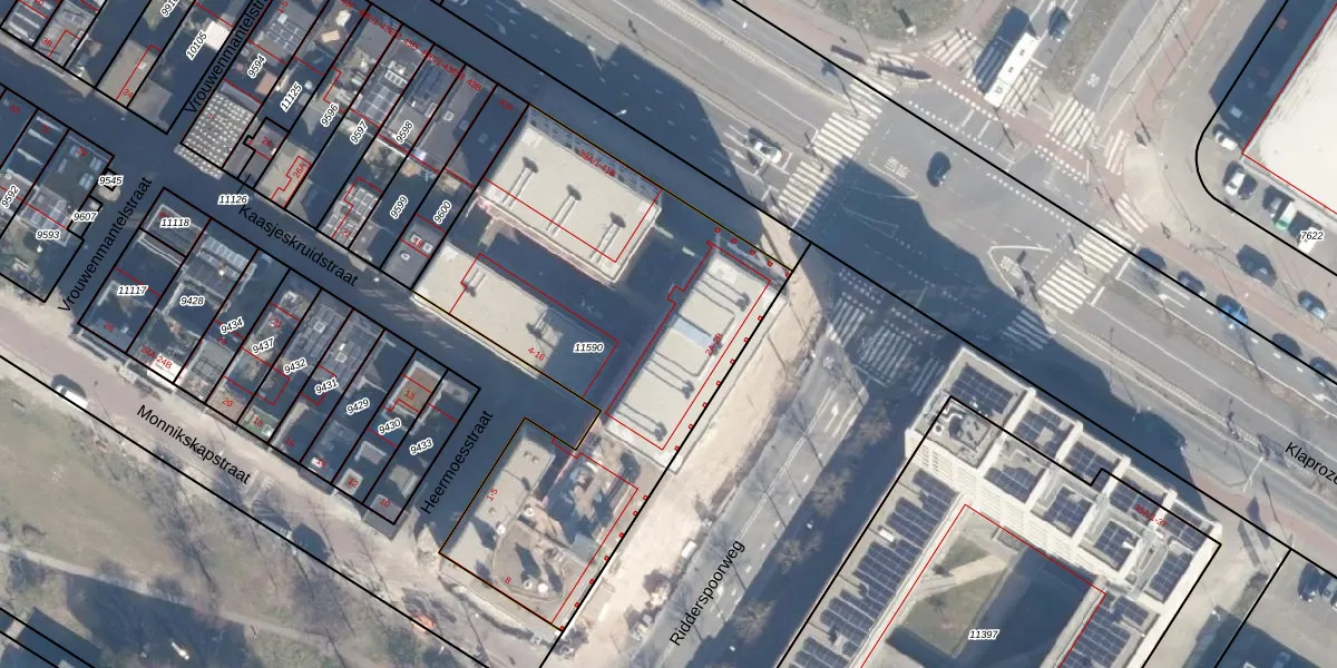 Het adres ligt op het perceel ASD07-K-11590, dat zich in de kadastrale gemeente Amsterdam bevindt. Het perceel is kleiner dan gemiddeld in Amsterdam. Het perceel is 2165 m² groot, terwijl het gemiddelde ligt op 3009,24 m². De grootste perceeloppervlakte in de kadastrale gemeente is 56,2 ha. De kleinste oppervlakte bedraagt 0 m². Op het perceel zijn 115 adressen aanwezig. In de Basisregistratie Kadaster (BRK) werden de grenzen van het perceel geregistreerd op 23-09-2021.