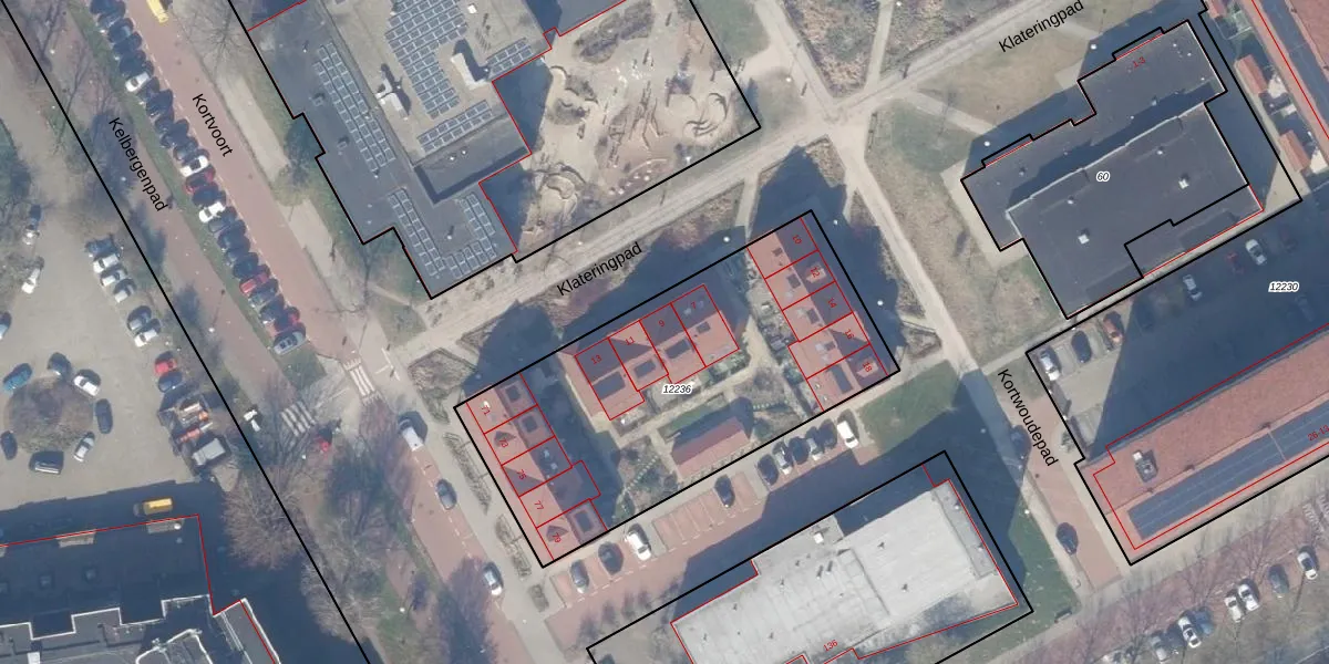 Klateringpad 9 is gelegen op kadastraal perceel WPK02L12236. Deze kadastrale aanduiding is uniek en wordt gebruikt door het Kadaster om eigendomsrechten en andere zakelijke rechten vast te leggen. Het perceel maakt onderdeel uit van de kadastrale gemeente Weesperkarspel.