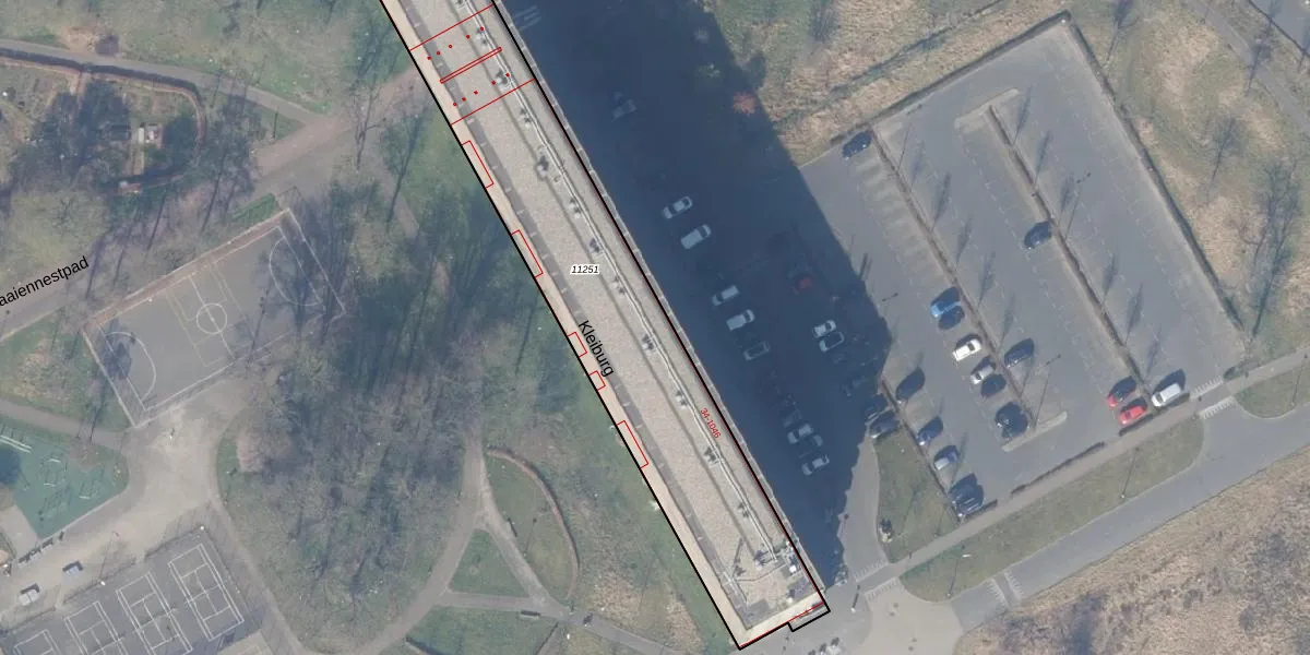 Het perceel waarop Kleiburg 43-A staat heeft een oppervlakte van 1841 m². Dit is een zeer groot perceel. De perceeloppervlakte wordt geregistreerd door het Kadaster. Gedetailleerde informatie over de maten van dit perceel kunt u vinden in het rapport Kadastrale kaart met maatvoering van Kleiburg 43-A.