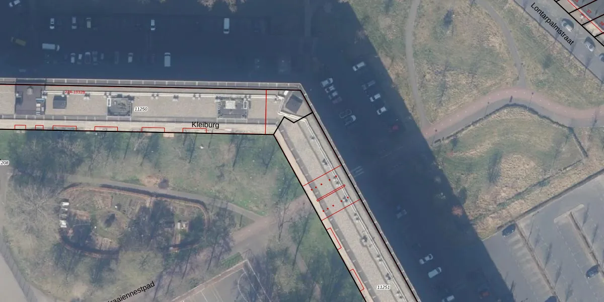 Het perceel waarop Kleiburg 535 staat heeft een oppervlakte van 1841 m². Dit is een zeer groot perceel. De perceeloppervlakte wordt geregistreerd door het Kadaster. Gedetailleerde informatie over de maten van dit perceel kunt u vinden in het rapport Kadastrale kaart met maatvoering van Kleiburg 535.