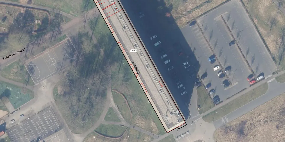 Het perceel waarop Kleiburg 543 staat heeft een oppervlakte van 1841 m². Dit is een zeer groot perceel. De perceeloppervlakte wordt geregistreerd door het Kadaster. Gedetailleerde informatie over de maten van dit perceel kunt u vinden in het rapport Kadastrale kaart met maatvoering van Kleiburg 543.