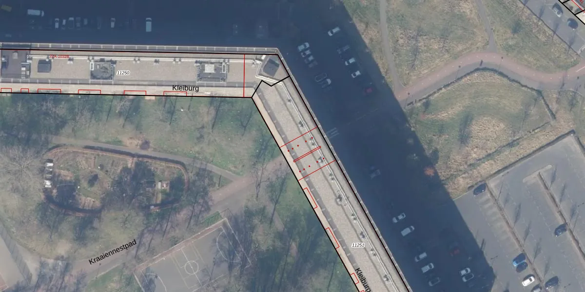 Het perceel waarop Kleiburg 638 staat heeft een oppervlakte van 1841 m². Dit is een zeer groot perceel. De perceeloppervlakte wordt geregistreerd door het Kadaster. Gedetailleerde informatie over de maten van dit perceel kunt u vinden in het rapport Kadastrale kaart met maatvoering van Kleiburg 638.