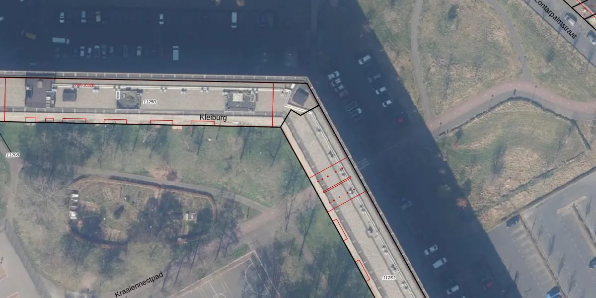 Het perceel waarop Kleiburg 935 staat heeft een oppervlakte van 1841 m². Dit is een zeer groot perceel. De perceeloppervlakte wordt geregistreerd door het Kadaster. Gedetailleerde informatie over de maten van dit perceel kunt u vinden in het rapport Kadastrale kaart met maatvoering van Kleiburg 935.