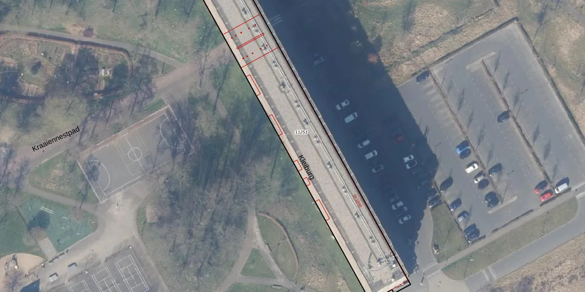 Het perceel waarop Kleiburg 942 staat heeft een oppervlakte van 1841 m². Dit is een zeer groot perceel. De perceeloppervlakte wordt geregistreerd door het Kadaster. Gedetailleerde informatie over de maten van dit perceel kunt u vinden in het rapport Kadastrale kaart met maatvoering van Kleiburg 942.