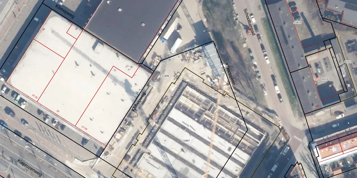 Klimopweg 103 is gelegen op kadastraal perceel ASD07K11847. Deze kadastrale aanduiding is uniek en wordt gebruikt door het Kadaster om eigendomsrechten en andere zakelijke rechten vast te leggen. Het perceel maakt onderdeel uit van de kadastrale gemeente Amsterdam.