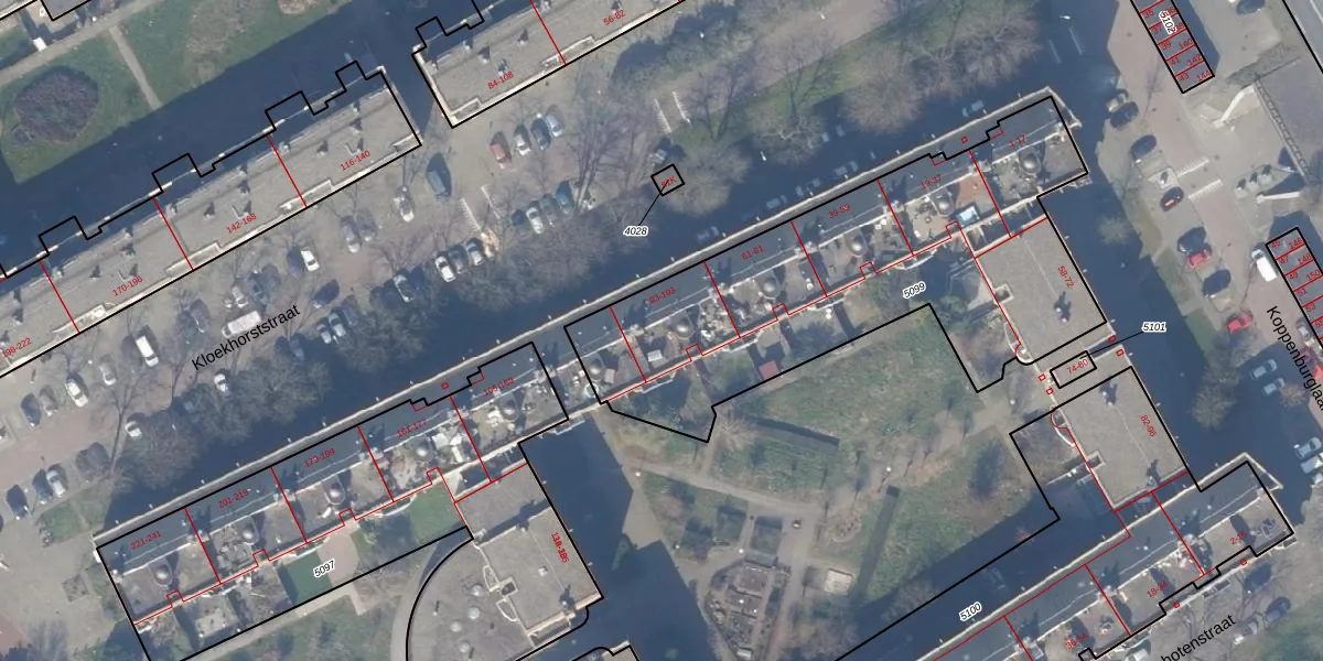 Het perceel waarop Kloekhorststraat 97 staat heeft een oppervlakte van 1895 m². Dit is een zeer groot perceel. De perceeloppervlakte wordt geregistreerd door het Kadaster. Gedetailleerde informatie over de maten van dit perceel kunt u vinden in het rapport Kadastrale kaart met maatvoering van Kloekhorststraat 97.