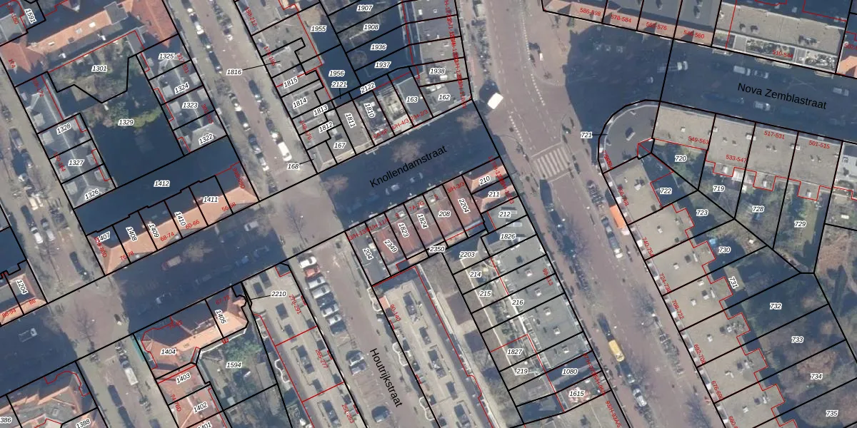 Het perceel waarop Knollendamstraat 7-B staat heeft een oppervlakte van 60 m². Dit is een klein perceel. De perceeloppervlakte wordt geregistreerd door het Kadaster. Gedetailleerde informatie over de maten van dit perceel kunt u vinden in het rapport Kadastrale kaart met maatvoering van Knollendamstraat 7-B.
