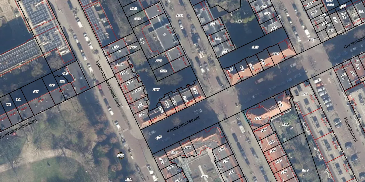 Het perceel waarop Knollendamstraat 94 staat heeft een oppervlakte van 63 m². Dit is een klein perceel. De perceeloppervlakte wordt geregistreerd door het Kadaster. Gedetailleerde informatie over de maten van dit perceel kunt u vinden in het rapport Kadastrale kaart met maatvoering van Knollendamstraat 94.