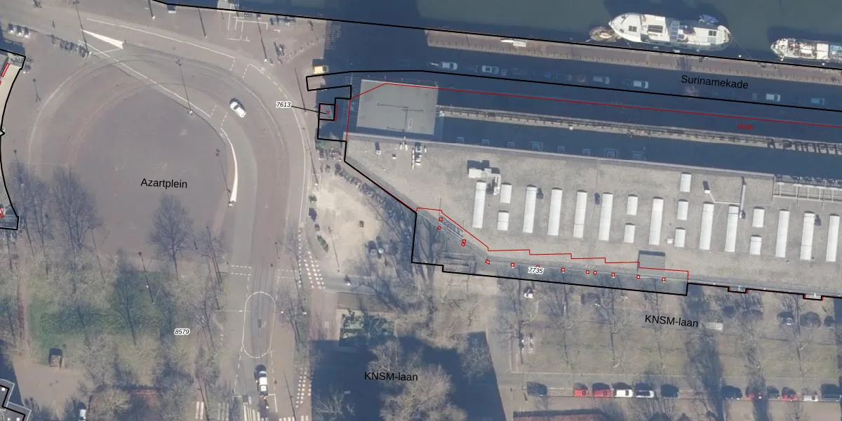 Het perceel waarop KNSM-laan 13 staat heeft een oppervlakte van 8065 m². Dit is een zeer groot perceel. De perceeloppervlakte wordt geregistreerd door het Kadaster. Gedetailleerde informatie over de maten van dit perceel kunt u vinden in het rapport Kadastrale kaart met maatvoering van KNSM-laan 13.