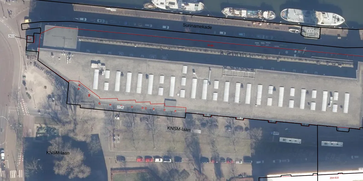 Het perceel waarop KNSM-laan 185 staat heeft een oppervlakte van 8065 m². Dit is een zeer groot perceel. De perceeloppervlakte wordt geregistreerd door het Kadaster. Gedetailleerde informatie over de maten van dit perceel kunt u vinden in het rapport Kadastrale kaart met maatvoering van KNSM-laan 185.