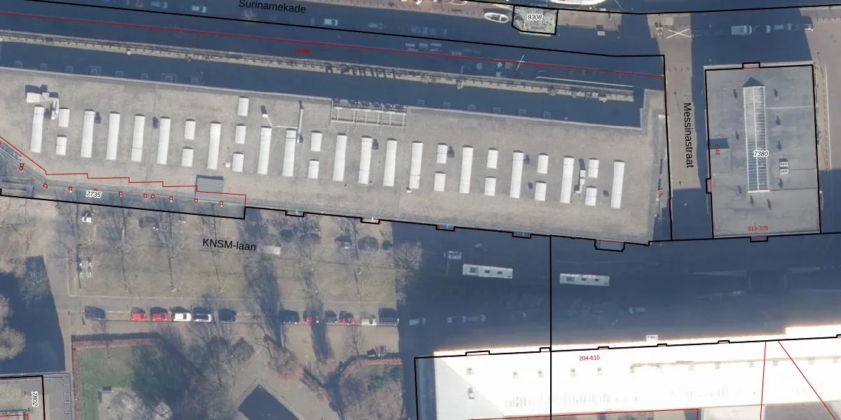 Het perceel waarop KNSM-laan 301 staat heeft een oppervlakte van 8065 m². Dit is een zeer groot perceel. De perceeloppervlakte wordt geregistreerd door het Kadaster. Gedetailleerde informatie over de maten van dit perceel kunt u vinden in het rapport Kadastrale kaart met maatvoering van KNSM-laan 301.