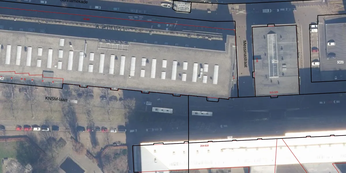 Het perceel waarop KNSM-laan 307 staat heeft een oppervlakte van 8065 m². Dit is een zeer groot perceel. De perceeloppervlakte wordt geregistreerd door het Kadaster. Gedetailleerde informatie over de maten van dit perceel kunt u vinden in het rapport Kadastrale kaart met maatvoering van KNSM-laan 307.