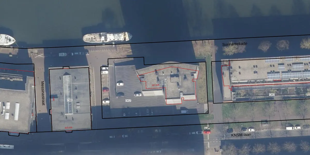 Het perceel waarop KNSM-laan 335 staat heeft een oppervlakte van 2385 m². Dit is een zeer groot perceel. De perceeloppervlakte wordt geregistreerd door het Kadaster. Gedetailleerde informatie over de maten van dit perceel kunt u vinden in het rapport Kadastrale kaart met maatvoering van KNSM-laan 335.