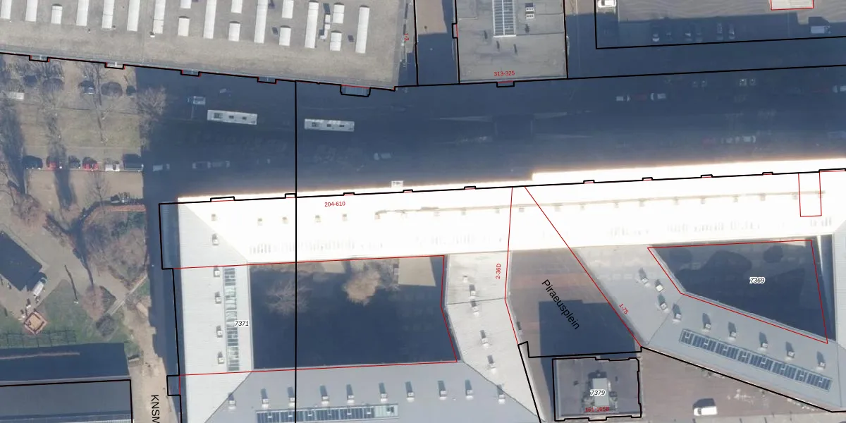 Het perceel waarop KNSM-laan 376 staat heeft een oppervlakte van 7168 m². Dit is een zeer groot perceel. De perceeloppervlakte wordt geregistreerd door het Kadaster. Gedetailleerde informatie over de maten van dit perceel kunt u vinden in het rapport Kadastrale kaart met maatvoering van KNSM-laan 376.