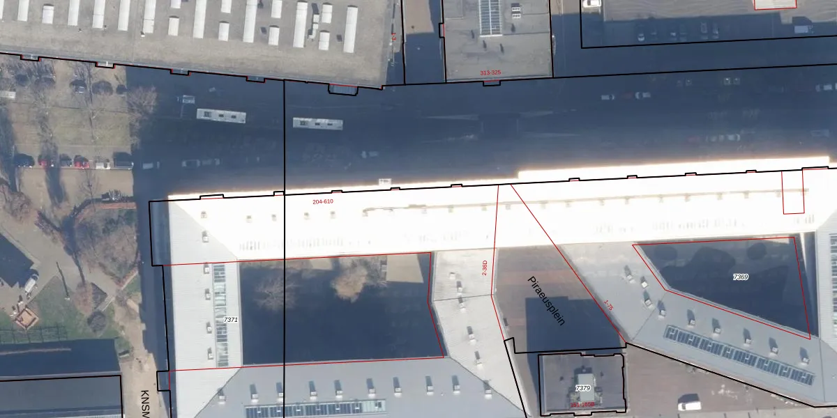 Het perceel waarop het adres ligt is ASD02-A-7369. De afkorting 'ASD02' staat voor kadastrale gemeente Amsterdam. De oppervlakte van het perceel is 7168 m². Dat is groter dan gemiddeld in Amsterdam, waar de gemiddelde perceeloppervlakte op 2763,93 m² ligt. Het grootste perceel in de kadastrale gemeente is 14,3 ha. Het kleinste perceel heeft een oppervlakte van 0 m². Er zijn 242 adressen aanwezig op het perceel. De huidige grenzen van het perceel zijn digitaal in de Basisregistratie Kadaster (BRK) geregistreerd op 09-02-2006.