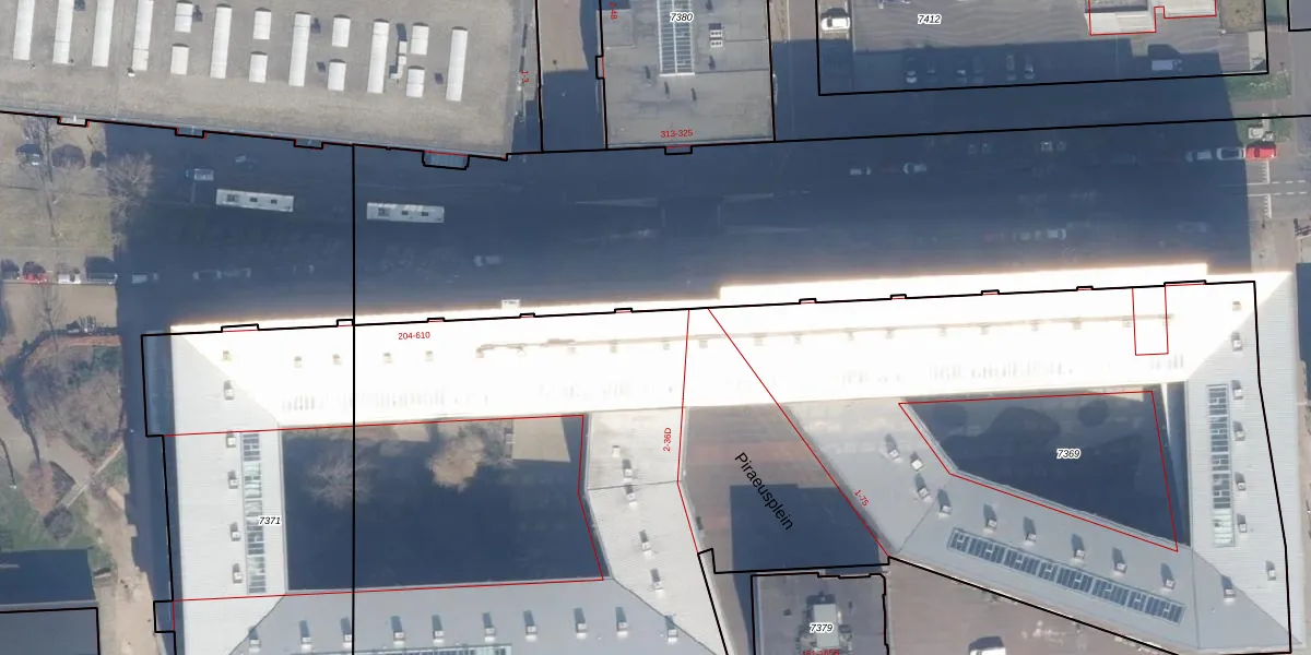 Het perceel waarop het adres ligt is ASD02-A-7369. De afkorting 'ASD02' staat voor kadastrale gemeente Amsterdam. De oppervlakte van het perceel is 7168 m². Dat is groter dan gemiddeld in Amsterdam, waar de gemiddelde perceeloppervlakte op 2763,93 m² ligt. De grootste perceeloppervlakte in de kadastrale gemeente is 14,3 ha. De kleinste oppervlakte bedraagt 0 m². Er zijn 242 adressen aanwezig op het perceel. De huidige grenzen van het perceel zijn digitaal in de Basisregistratie Kadaster (BRK) geregistreerd op 09-02-2006.