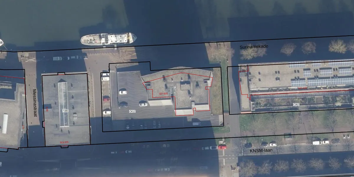 Het perceel waarop KNSM-laan 391 staat heeft een oppervlakte van 2385 m². Dit is een zeer groot perceel. De perceeloppervlakte wordt geregistreerd door het Kadaster. Gedetailleerde informatie over de maten van dit perceel kunt u vinden in het rapport Kadastrale kaart met maatvoering van KNSM-laan 391.