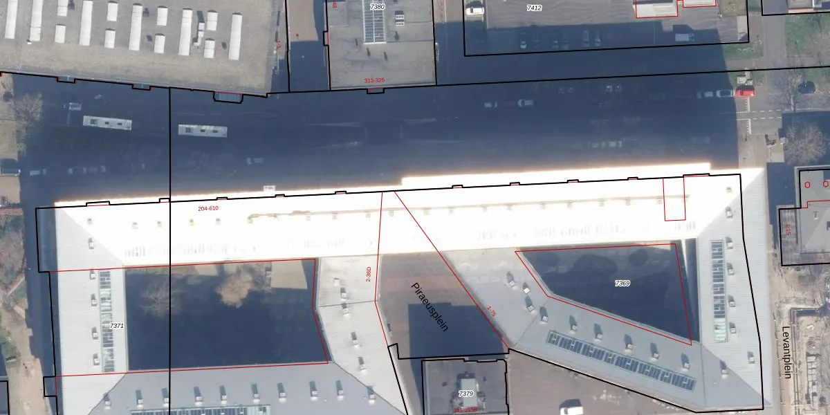 Het perceel waarop het adres ligt is ASD02-A-7369. De afkorting 'ASD02' staat voor kadastrale gemeente Amsterdam. De oppervlakte van het perceel is 7168 m². Dat is groter dan gemiddeld in Amsterdam, waar de gemiddelde perceeloppervlakte op 2763,93 m² ligt. Het grootste perceel in de kadastrale gemeente is 14,3 ha. Het kleinste perceel heeft een oppervlakte van 0 m². Op het perceel zijn 242 adressen aanwezig. De huidige grenzen van het perceel zijn digitaal in de Basisregistratie Kadaster (BRK) geregistreerd op 09-02-2006.