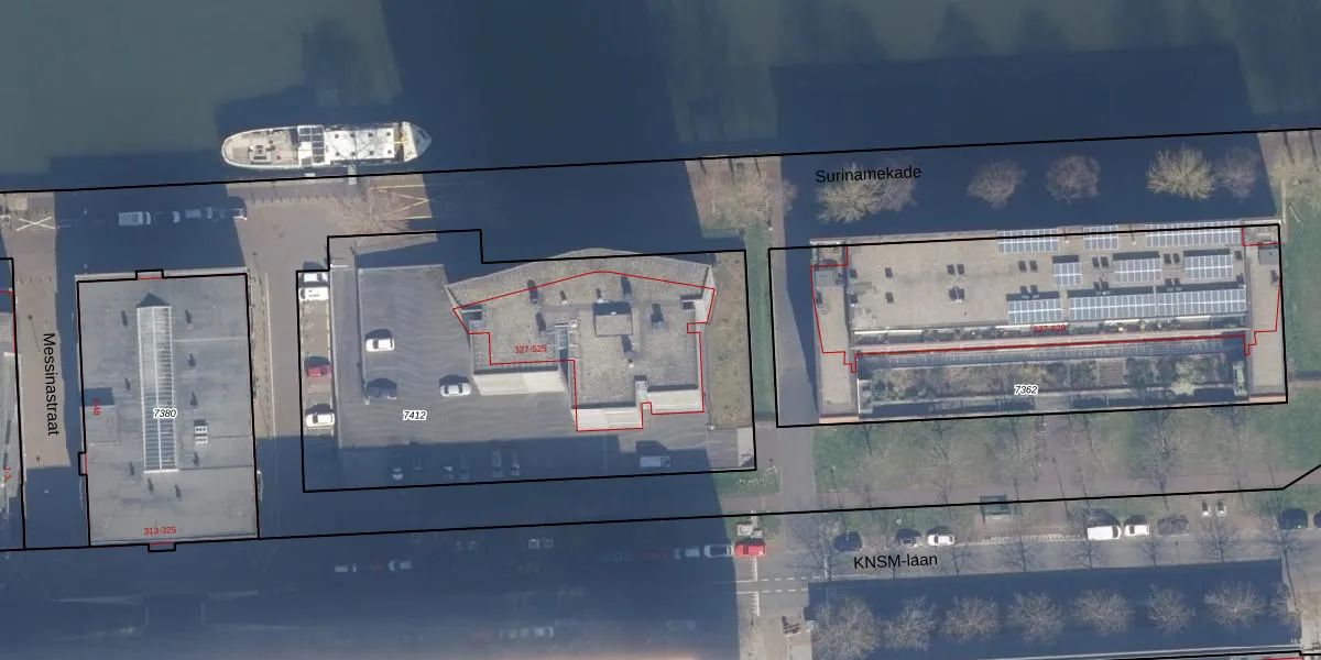 Het perceel waarop KNSM-laan 407 staat heeft een oppervlakte van 2385 m². Dit is een zeer groot perceel. De perceeloppervlakte wordt geregistreerd door het Kadaster. Gedetailleerde informatie over de maten van dit perceel kunt u vinden in het rapport Kadastrale kaart met maatvoering van KNSM-laan 407.