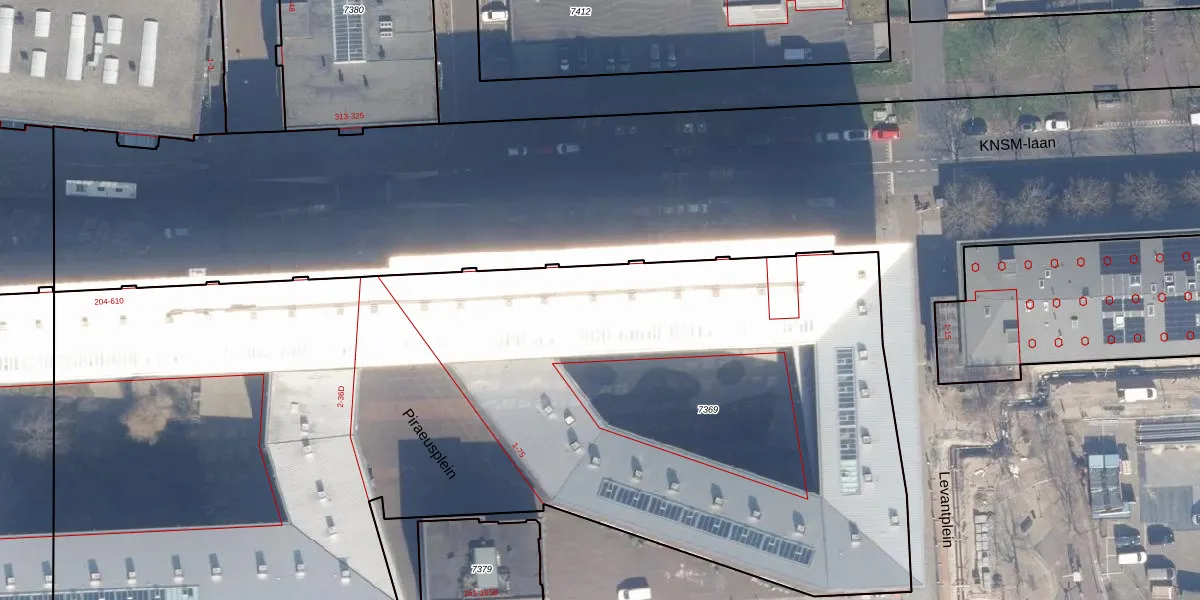 Het perceel waarop KNSM-laan 428 staat heeft een oppervlakte van 7168 m². Dit is een zeer groot perceel. De perceeloppervlakte wordt geregistreerd door het Kadaster. Gedetailleerde informatie over de maten van dit perceel kunt u vinden in het rapport Kadastrale kaart met maatvoering van KNSM-laan 428.