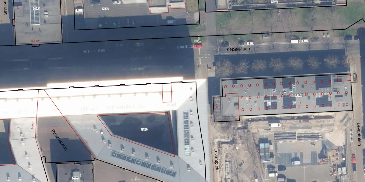Het perceel waarop KNSM-laan 464 staat heeft een oppervlakte van 7168 m². Dit is een zeer groot perceel. De perceeloppervlakte wordt geregistreerd door het Kadaster. Gedetailleerde informatie over de maten van dit perceel kunt u vinden in het rapport Kadastrale kaart met maatvoering van KNSM-laan 464.