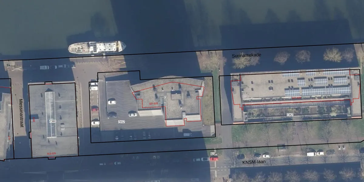Het perceel waarop KNSM-laan 519 staat heeft een oppervlakte van 2385 m². Dit is een zeer groot perceel. De perceeloppervlakte wordt geregistreerd door het Kadaster. Gedetailleerde informatie over de maten van dit perceel kunt u vinden in het rapport Kadastrale kaart met maatvoering van KNSM-laan 519.