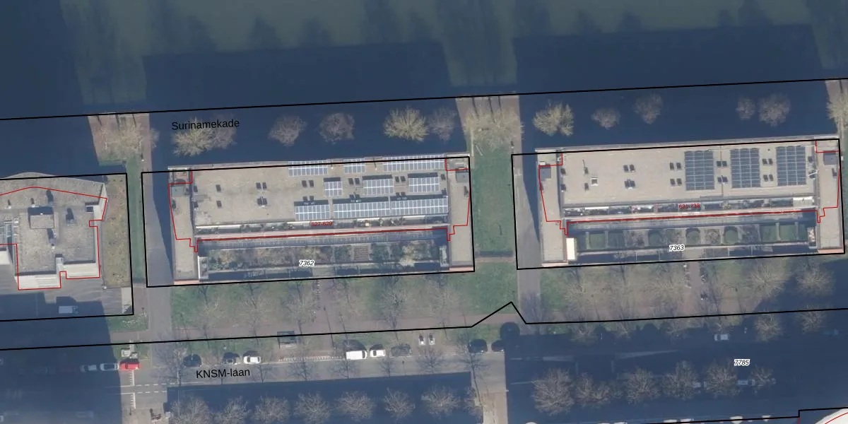 Het perceel waarop KNSM-laan 599 staat heeft een oppervlakte van 2086 m². Dit is een zeer groot perceel. De perceeloppervlakte wordt geregistreerd door het Kadaster. Gedetailleerde informatie over de maten van dit perceel kunt u vinden in het rapport Kadastrale kaart met maatvoering van KNSM-laan 599.