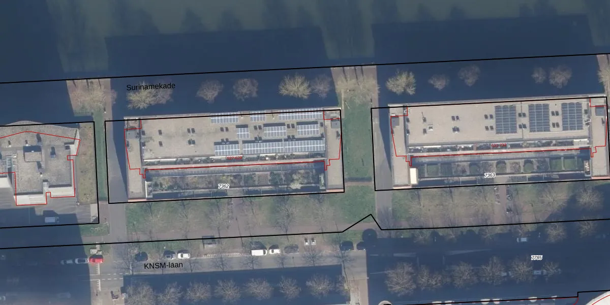 Het perceel waarop KNSM-laan 613 staat heeft een oppervlakte van 2086 m². Dit is een zeer groot perceel. De perceeloppervlakte wordt geregistreerd door het Kadaster. Gedetailleerde informatie over de maten van dit perceel kunt u vinden in het rapport Kadastrale kaart met maatvoering van KNSM-laan 613.