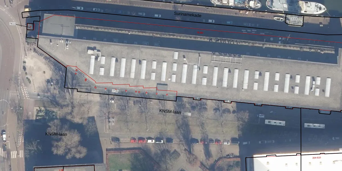 Het perceel waarop KNSM-laan 63 staat heeft een oppervlakte van 8065 m². Dit is een zeer groot perceel. De perceeloppervlakte wordt geregistreerd door het Kadaster. Gedetailleerde informatie over de maten van dit perceel kunt u vinden in het rapport Kadastrale kaart met maatvoering van KNSM-laan 63.