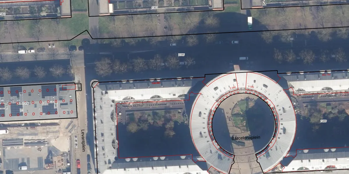 Het adres ligt op het perceel ASD02-A-7489, dat zich in de kadastrale gemeente Amsterdam bevindt. De oppervlakte van het perceel is 8522 m². Dat is groter dan gemiddeld in Amsterdam, waar de gemiddelde perceeloppervlakte op 2763,93 m² ligt. De grootste perceeloppervlakte in de kadastrale gemeente is 14,3 ha. De kleinste oppervlakte bedraagt 0 m². Op het perceel zijn 331 adressen aanwezig. De laatste wijziging in het de Basisregistratie Kadaster (BRK) was op 09-02-2006.