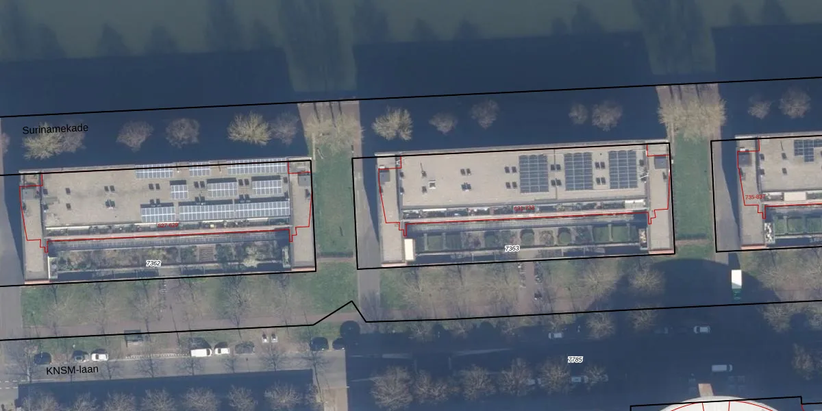 Het perceel waarop KNSM-laan 657 staat heeft een oppervlakte van 2086 m². Dit is een zeer groot perceel. De perceeloppervlakte wordt geregistreerd door het Kadaster. Gedetailleerde informatie over de maten van dit perceel kunt u vinden in het rapport Kadastrale kaart met maatvoering van KNSM-laan 657.